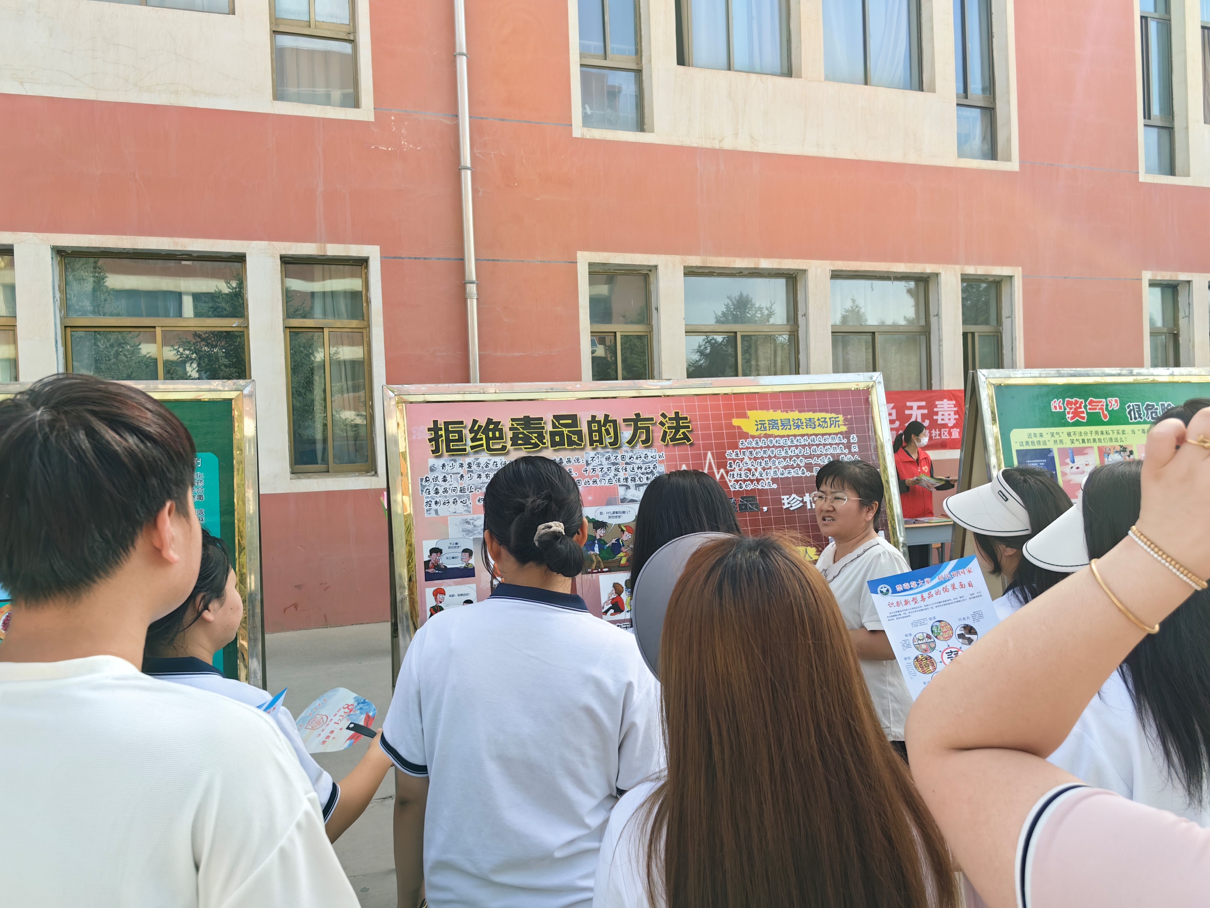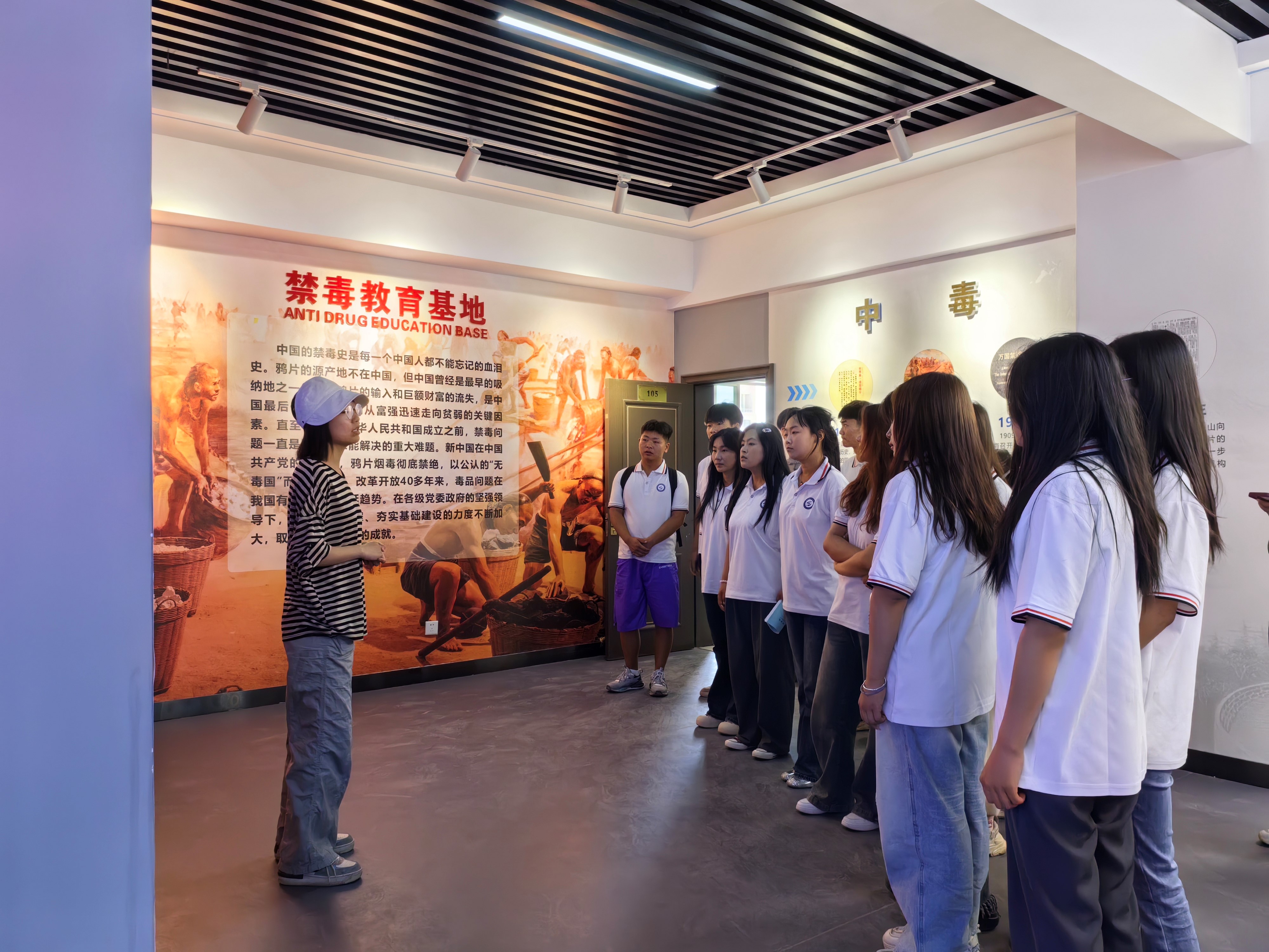组织师生参观了酒泉市禁毒教育基地。禁毒教育基地讲解员紧紧围绕“防范青少年药物滥用“宣讲主题,向师生详细讲解了什么是毒品、新型毒品的危害,同时引导学生们树立健康观念,教育学生清楚辩识“神仙水”“跳跳糖”等新型毒品。观看了毒品仿真品,参观了制毒、吸毒工具等展区,同时青少年通过观看图片展板、体验VR模拟演示设备等方式进一步了解毒品的危害。