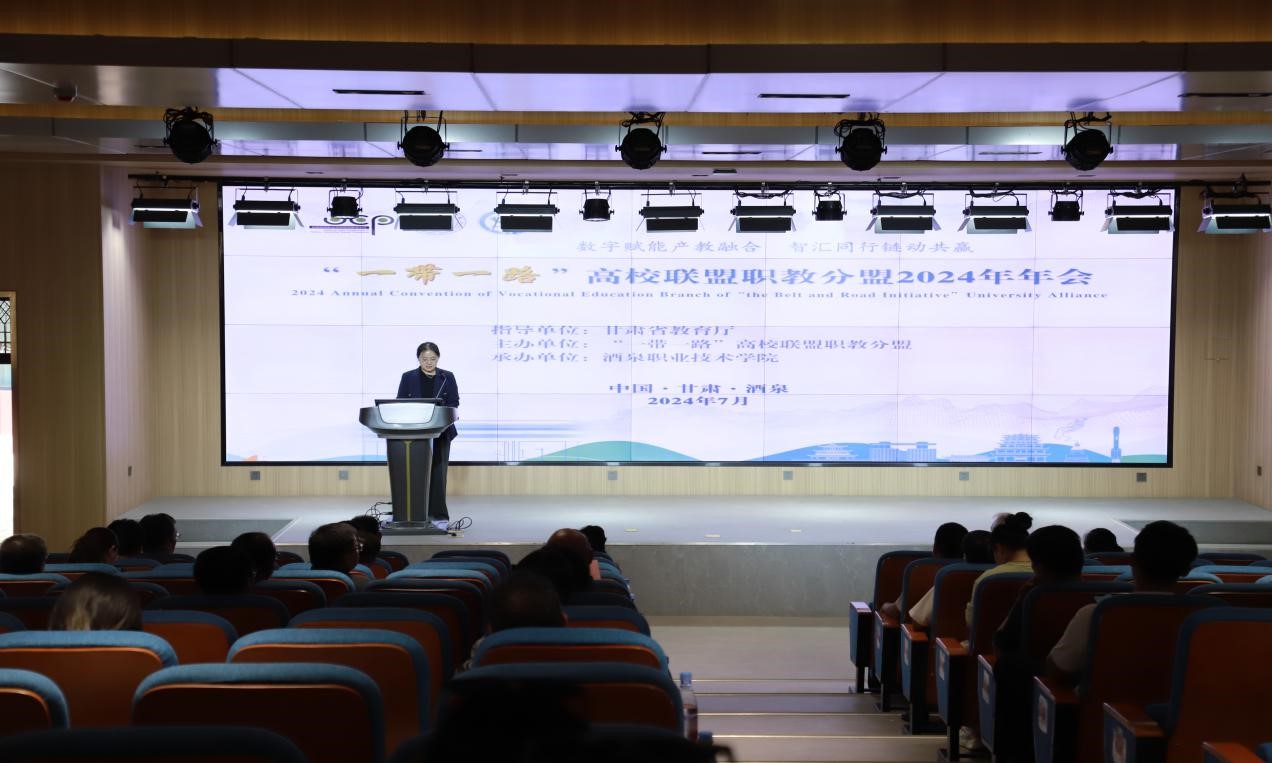 要闻快递 > 正文为进一步落实《关于深化现代职业教育体系建设改革的意见》,加快推进职业教育国际化发展,充分发挥“一带一路”高校联盟职教分盟平台作用,促进国际产能合作建设,不断提升职业教育服务“一带一路”建设和区域经济社会发展的能力,在全国高等职业学校校长联席会和甘肃省教育厅的鼎力支持下,“一带一路”高校联盟职教分盟2024年年会于7月2日下午在酒泉职业技术学院闻道厅召开。来自全国高等职业学校校长联席会、甘肃省教育厅、中巴国际产教合作联盟、德国汉斯·赛德尔基金会中国西部职业教育与发展中心、“一带一路”高校联盟职教分盟19个成员单位的相关领导、专家及酒泉职业技术学院部分师生代表等120余人应邀出席了年会,探寻中国职业教育发展的新动能、新路径,共同感受中国职业教育发展的强劲脉动,见证中国高校为世界职业教育发展贡献的方案与智慧。会议以“数字赋能产教融合 智汇同行链动共赢”为主题,由英国国家学历学位评估认证中心中方理事会外联部张辂主任主持。