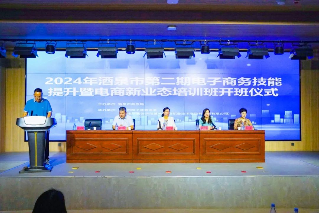要闻快递 > 正文为进一步推动我市电子商务事业高质量发展,提升电子商务行业从业人员综合素质和专业技能,7月8日-7月12日,酒泉市商务局联合市电子商务协会、酒泉职业技术学院科技园有限责任公司依托国家电子商务示范基地,举办2024年酒泉市第二期电子商务技能提升暨电商新业态培训班。市民政局、市商务局、共青团酒泉市委员会、市妇联等相关领导、相关业务负责人,市电子商务协会会员代表单位,商贸企业负责人,灵活就业人员,电商爱好者共计百余人参与开班仪式。