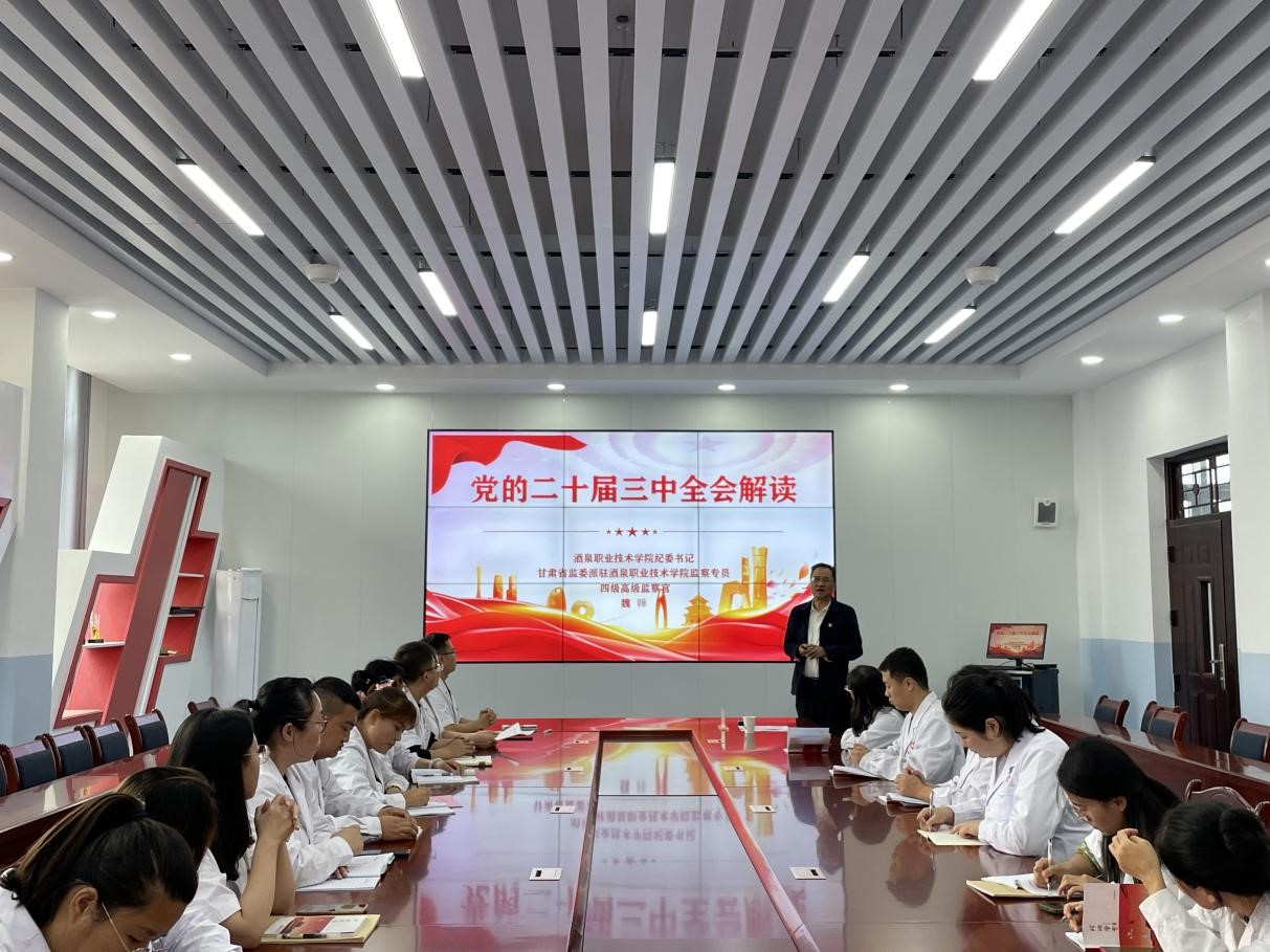 为深入学习贯彻党的二十届三中全会精神,教育引导全体党员干部把思想和行动统一到全会精神上来。2024年9月18日下午,酒泉职业技术学院党委委员、纪委书记、省监委派驻酒泉职业技术学院监察专员、四级高级监察官魏韡为医学院全体教师讲授学习贯彻党的二十届三中全会精神专题党课,解读党的二十届三中全会精神,引导广大教师把思想和行动统一到党中央的决策和部署上来。