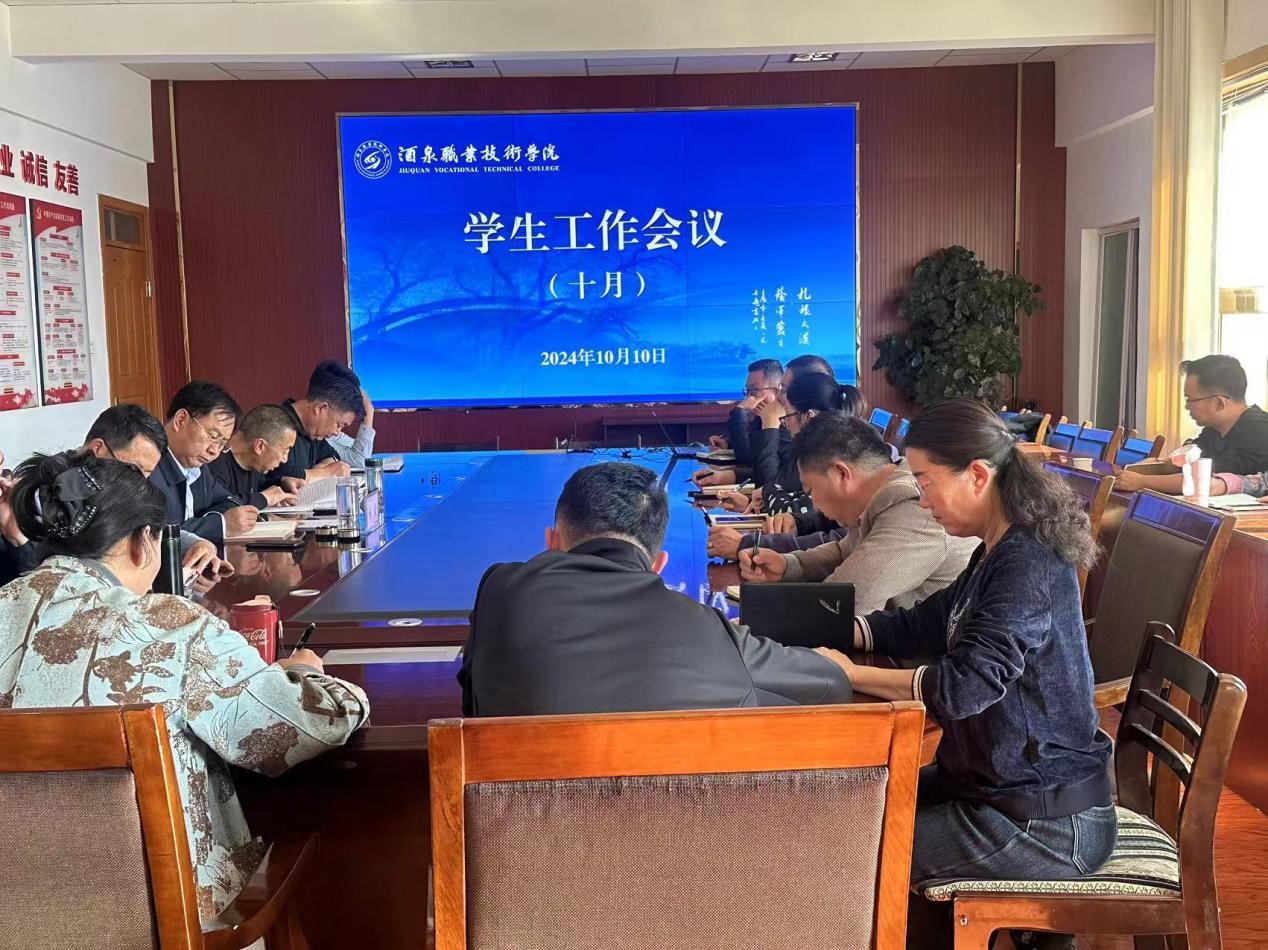 2024年10月10日下午,学校召开十月份学生工作会议。学校党委委员、副校长施荣主持会议。学工部、后勤管理处、校产处、应急安稳处、校团委负责人及二级学院主管学生工作副院长参加会议。
