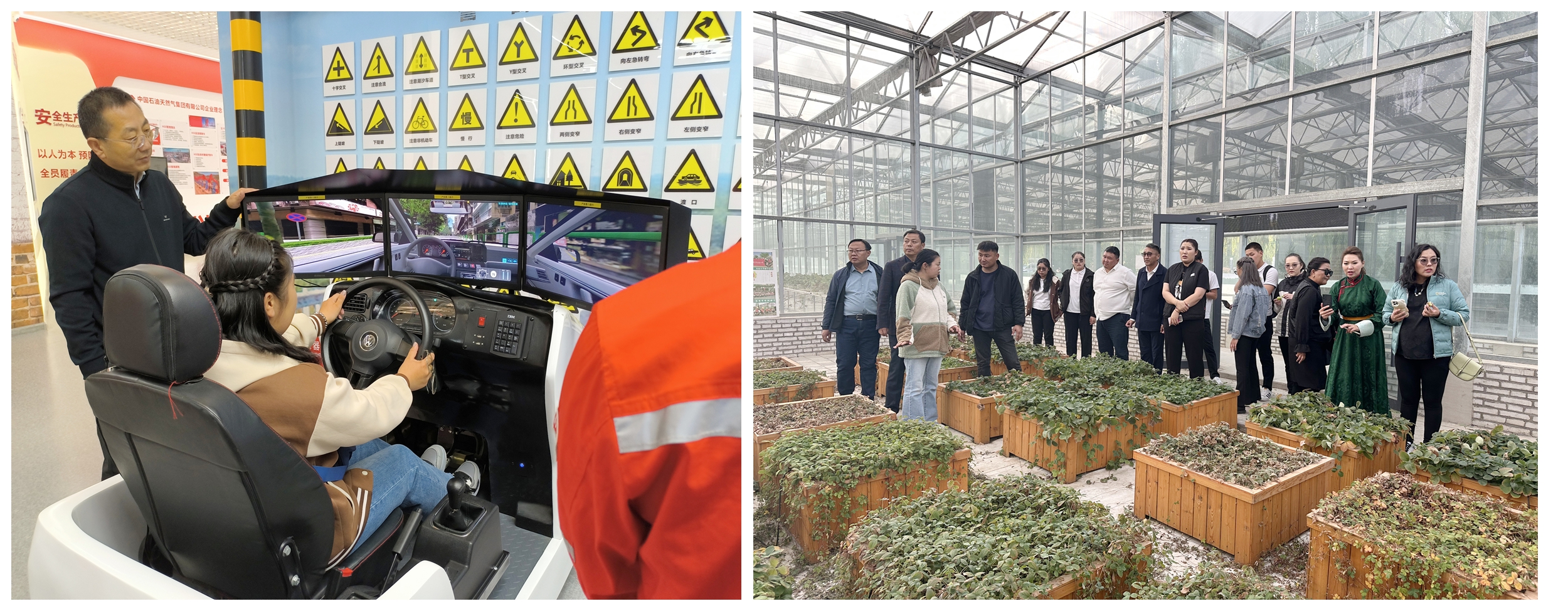 期间,宝力德·赫西格巴雅尔一行参观了我校智能制造中心、新能源国际共享中心、生命科学馆、敦煌传习所、光伏电厂等场所,重点了解了学校实验实训条件建设情况。在5D影院感受了立体感和纵深感带来的强烈视觉冲击,在校史馆了解了学校发展历程、办学理念、成果特色和校园文化等,并在现代农业技术中心体验了种苗移植技术。