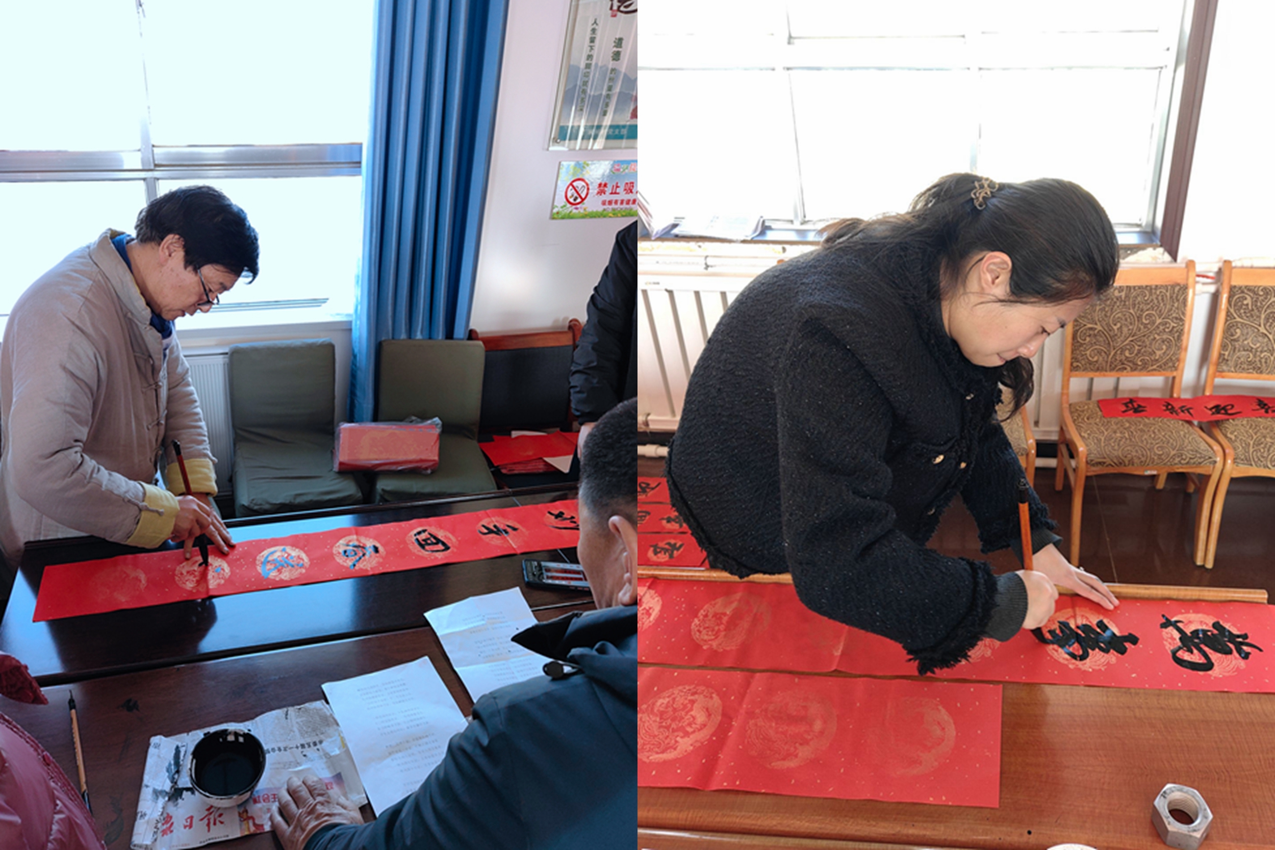 在丁家闸的村民们早早就来到活动地点等候,拿到一副精心挑选的春联后赞不绝口:“还是手写的春联更有人情味!”“以前都是去买印刷好的春联,今天老师们来我们这儿写春联,不仅现场领略了书法家的风采,还得到了一份‘特别定制’的春联,非常开心!”小坝沟村民们也喜笑颜开地向大家展示着他们手里的春联。(信息员:培训处 董金玲)
