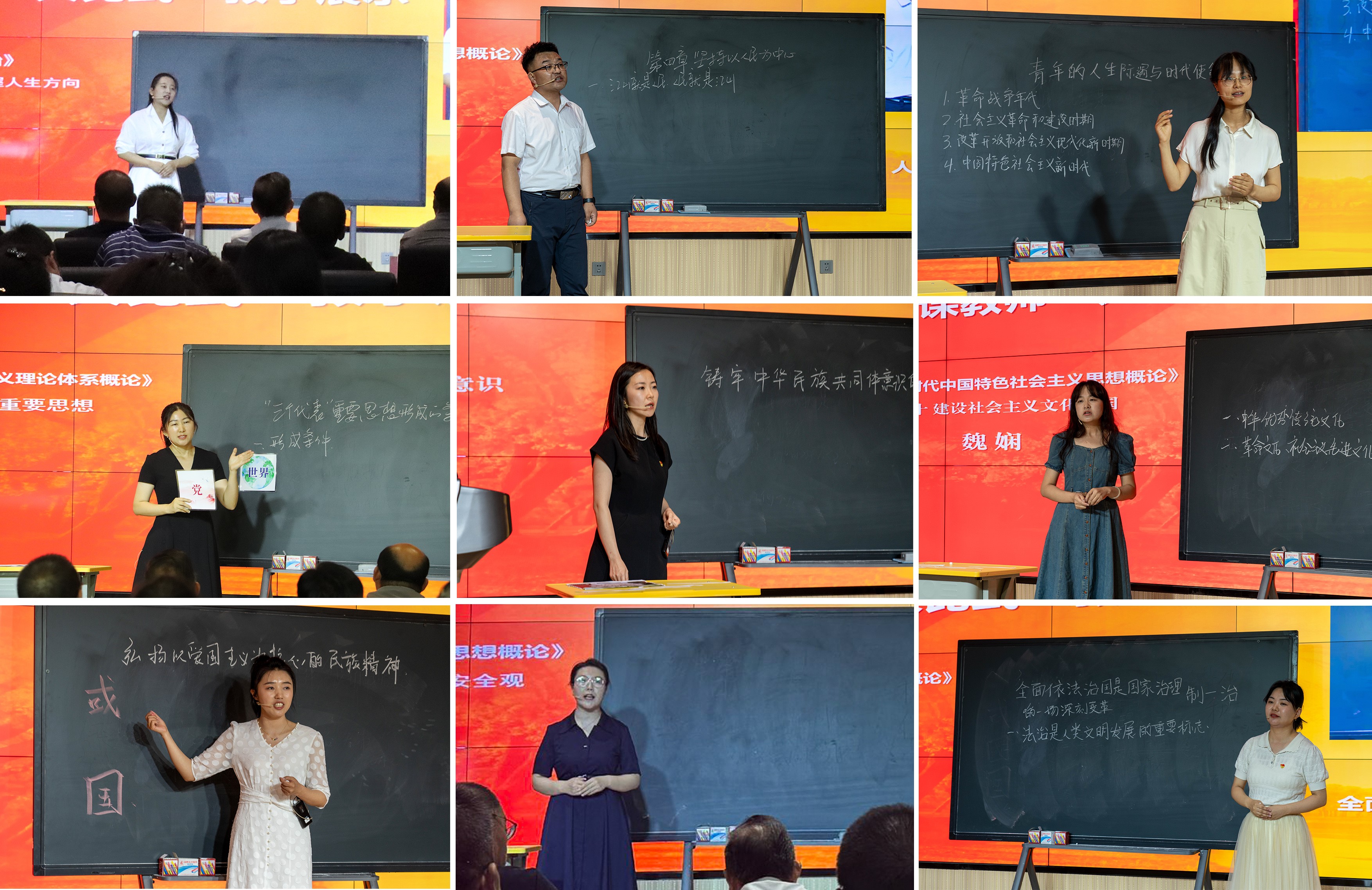 本次思政课教师“大比武”教学展示活动,紧扣思政课教学主题,各参赛教师结合自身教学经验,以丰富的教学方法和典型的教学案例,全面展示思政课堂教学的多样性和内涵价值,彰显我校思政教师扎实的专业素养和良好的精神风貌。