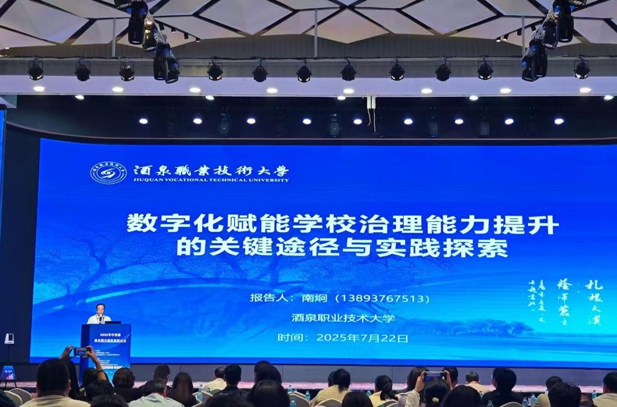 2025年7月22日,2025年中西部教育数字化发展研讨会在兰州召开。此次大会以“数智时代中西部教育变革与创新”为主题,旨在探索“人工智能+教育”应用场景的全新范式,推动大模型与教育教学的深度融合,优化并强化中西部教育数字技术基础,开辟中西部教育发展的新路径,塑造发展新优势。酒泉职业技术大学作为职业院校唯一代表交流分享了职业教育信息化成果。