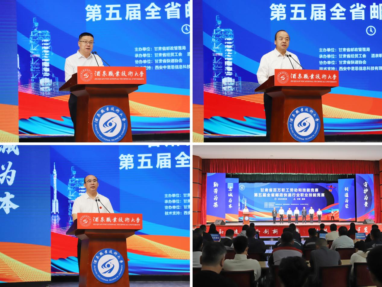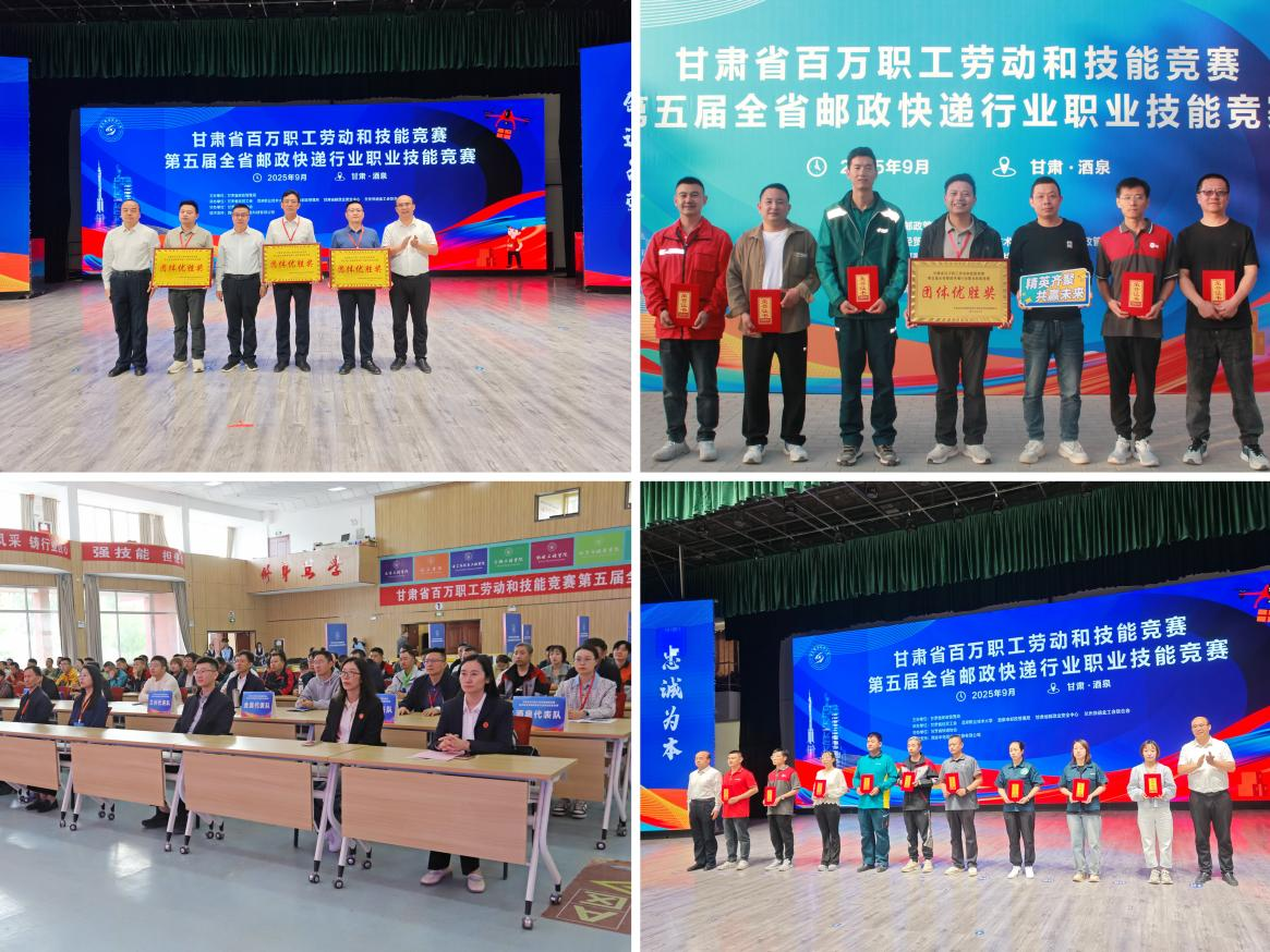 2025年9月17日至18日,由甘肃省邮政管理局主办,甘肃省经贸工会、酒泉职业技术大学、酒泉市邮政管理局、甘肃省邮政业安全中心、兰州快递业工会联合会联合承办的2025年第五届全省邮政快递行业职业技能竞赛在酒泉职业技术大学举办。甘肃省邮政管理局人事处处长柳新会、甘肃省经贸工会二级调研员秦利军、酒泉职业技术大学党委委员、副校长杨洁出席开幕式,来自全省15支代表队的102名选手参加了技能竞赛。