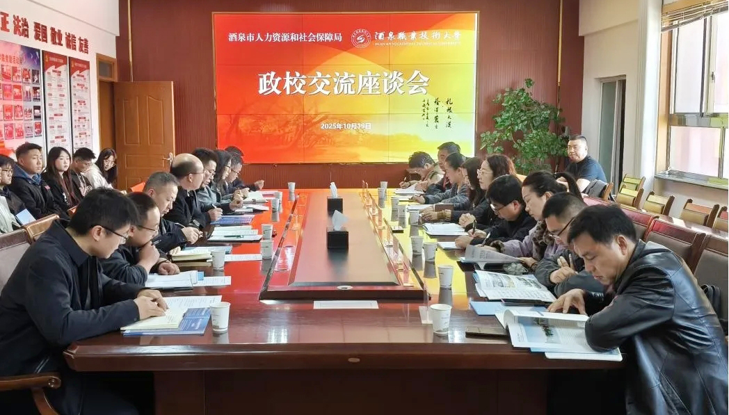 学校党委委员、副校长杨洁对市人社局及各县(市、区)人才中心领导的到来表示热烈欢迎,并介绍了学校办学历史、专业设置及毕业生就业情况。他表示,学校始终坚持服务区域发展的办学宗旨,但目前学校在岗位技能匹配、校企合作深度以及提升非酒泉籍毕业生留酒意愿等方面仍面临挑战,希望政企各方能在提供更多优质岗位、深化课程共建与人才共育等方面给予学校更大支持。