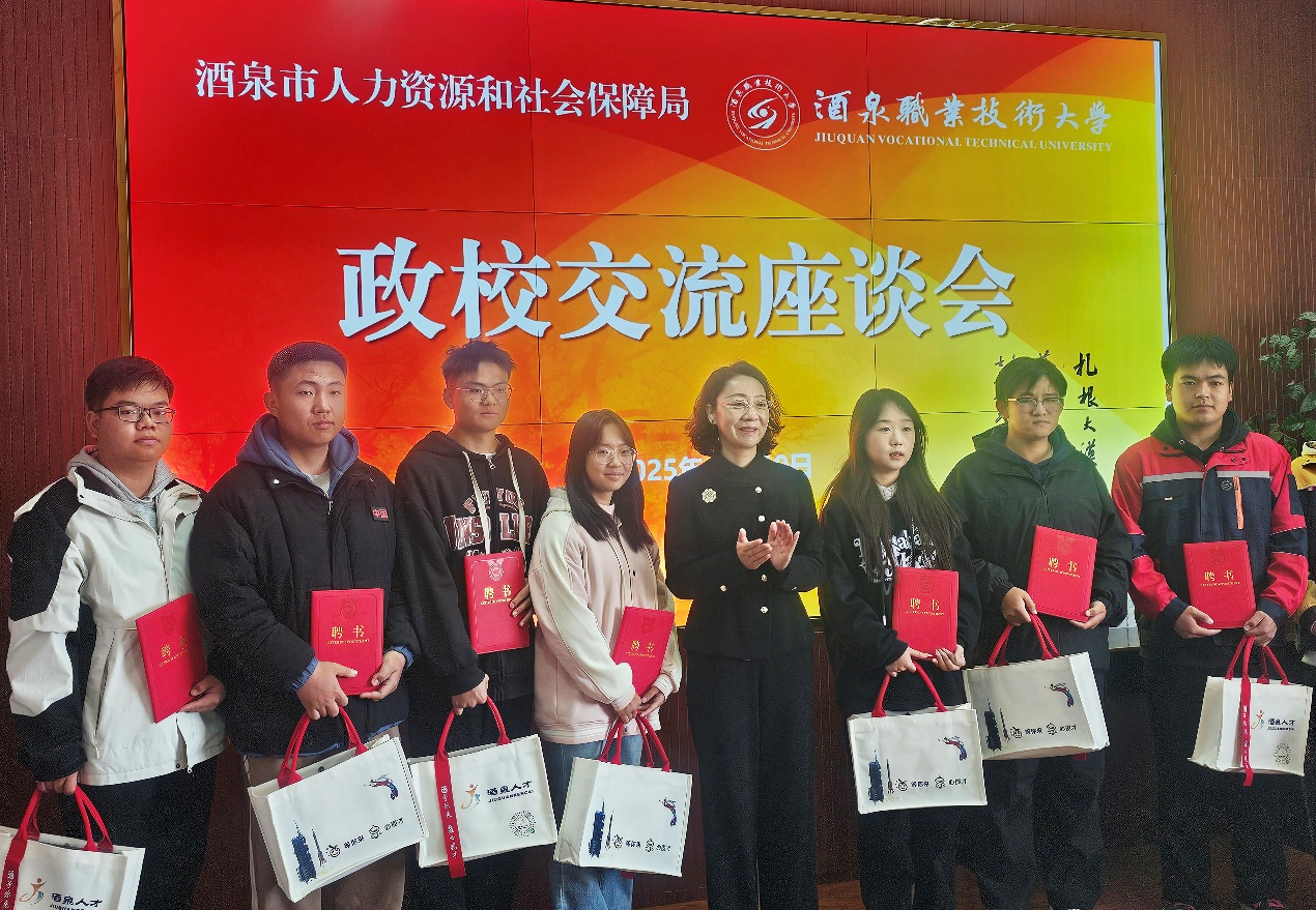 此次“才聚酒泉西北行”系列活动走进校园,是我校深化政校行企合作、推动毕业生留酒就业的又一重要举措。学校将以此次活动为契机,持续强化就业服务,深化产教融合,引导更多毕业生扎根酒泉、服务酒泉,为服务国家重大战略和酒泉建设区域中心城市贡献酒职大力量。(信息员:就业指导服务中心   梁琼)