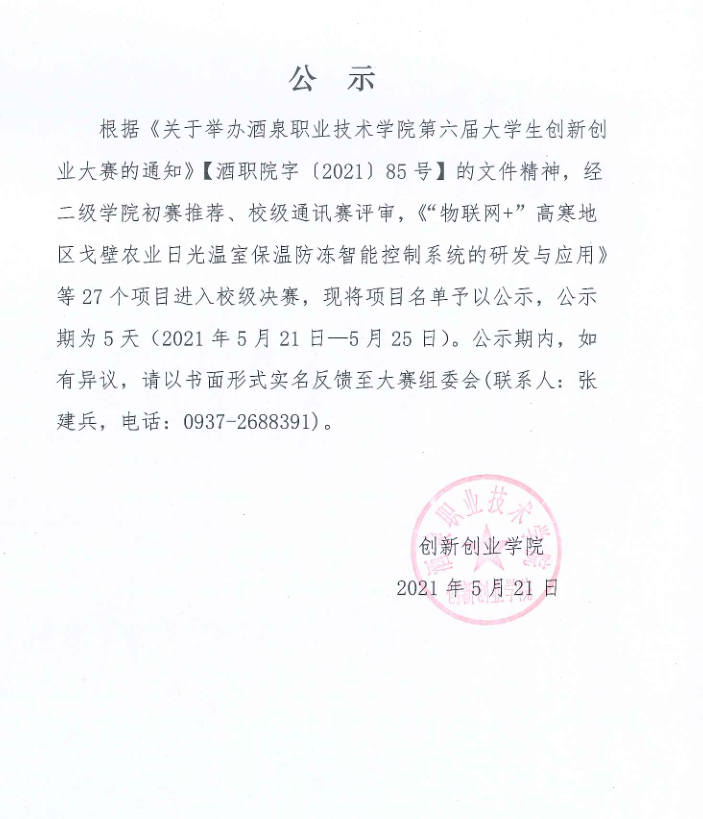 关于举办酒泉职业技术学院第六届大学生创新创业大赛的通知