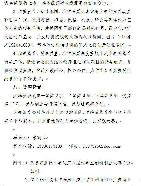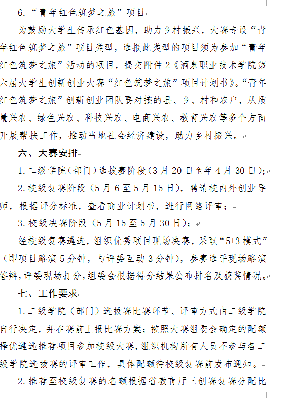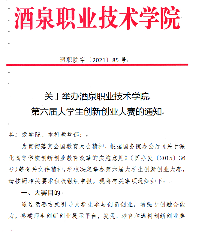 关于举办酒泉职业技术学院第六届大学生创新创业大赛的通知