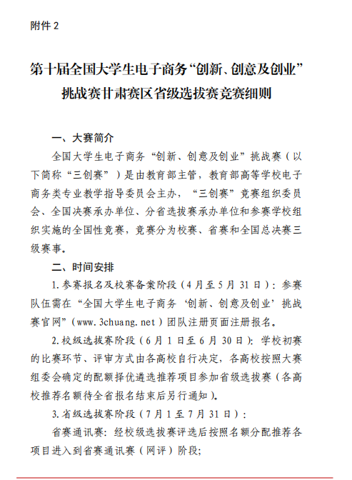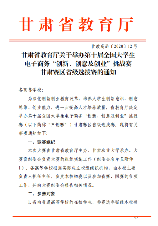 甘肃省教育厅关于举办第十届全国大学生 电子商务“创新、创意及创业”挑战赛 甘肃赛区省级选拔赛的通知