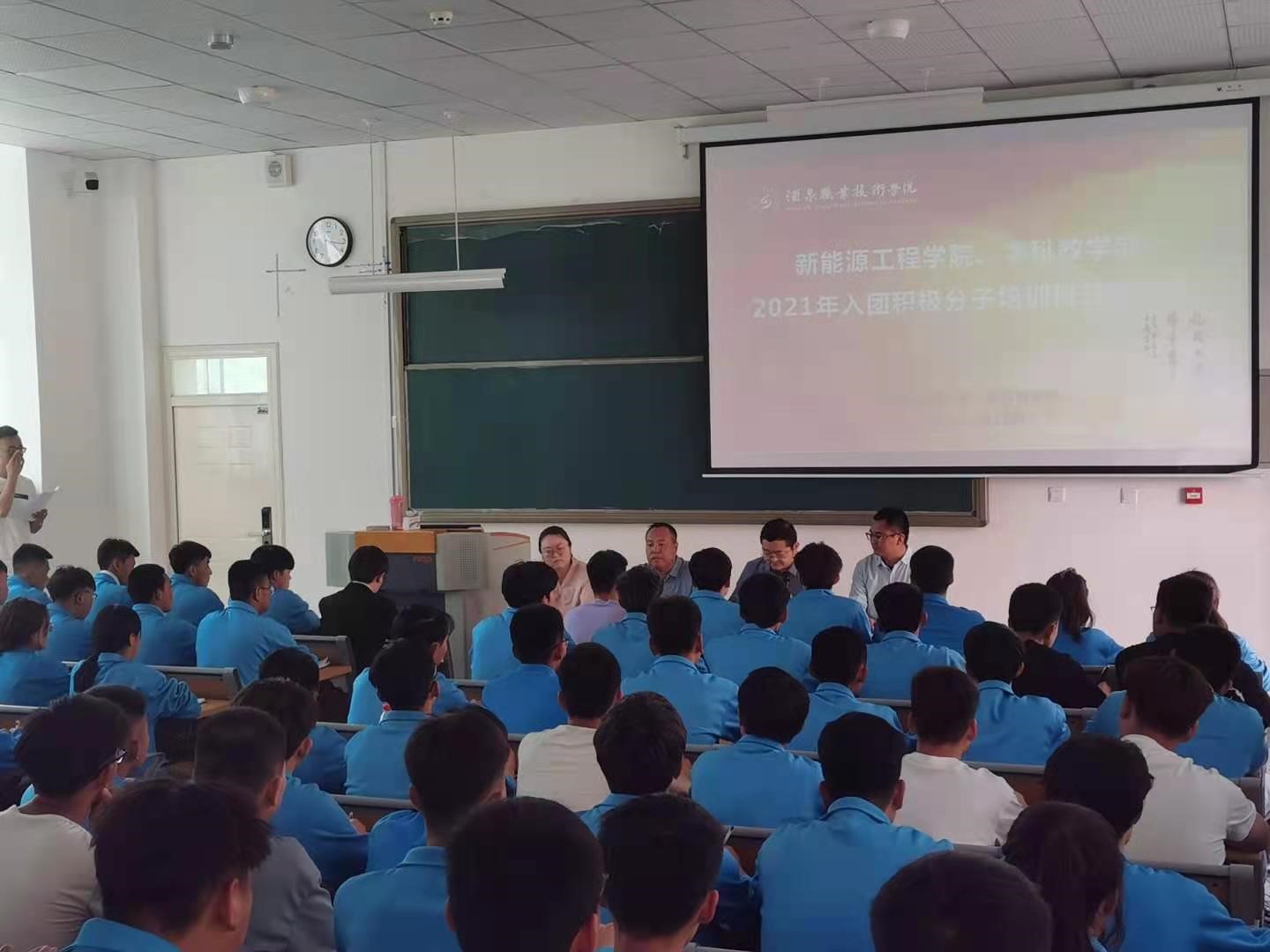 壮丽的事业,激励着我们继往开来。5月11日下午,新能源工程学院、本科教学部2021年入团积极分子暨“青马工程”培训班开班仪式在致远楼阶梯教室隆重举行。本科教学部党支部书记任小勇、新能源工程学院党支部副书记李亮、教师代表及2021年培训班学员参加了开班仪式。