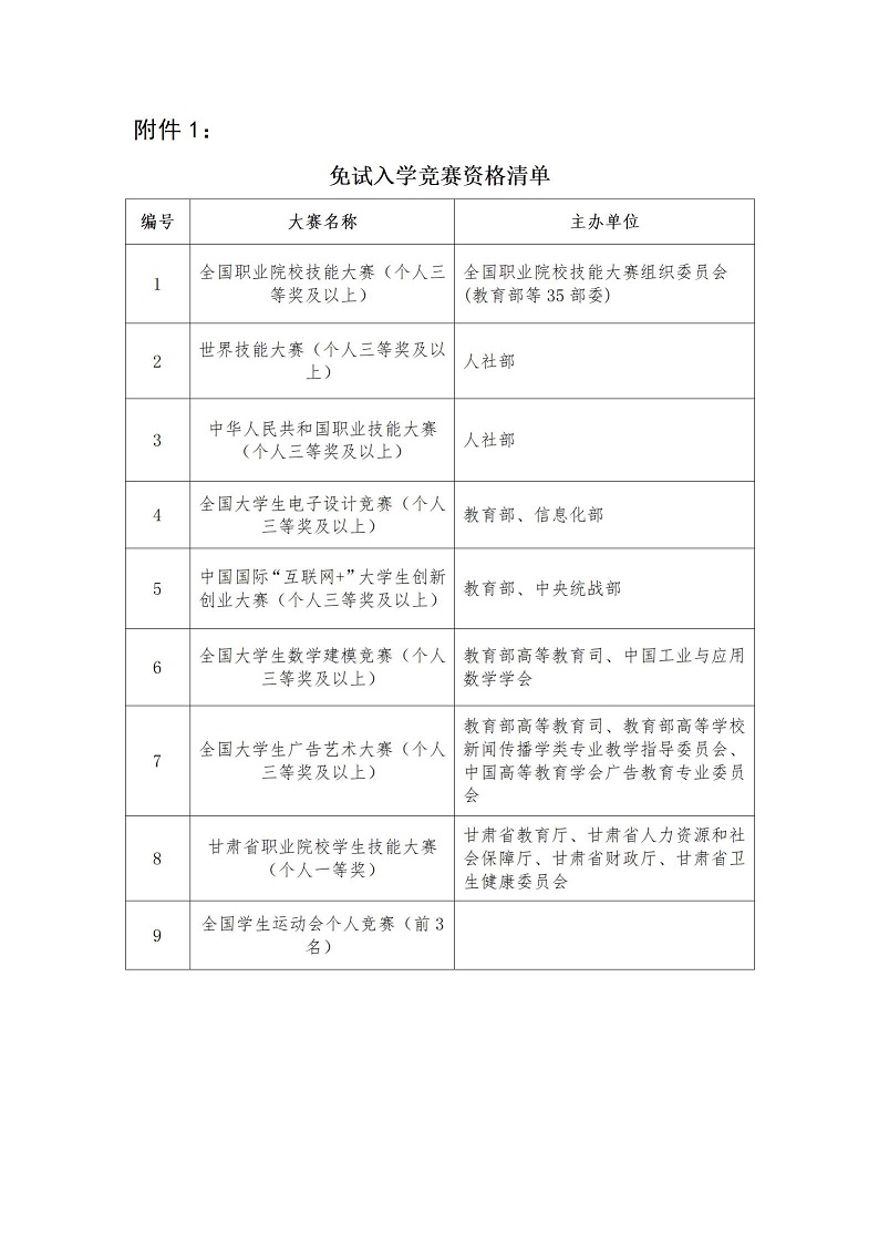 4.在甘肃省职业院校学生技能大赛中获得个人一等奖的应届毕业生(附件1)。