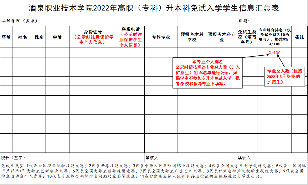 2.酒泉职业技术学院2022年高职(专科)升本科免试人学学生信息汇总表